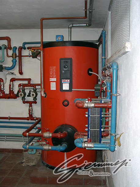 Esempio di centrale termica interrata per servire riscaldamento interno di 800 mq alimentazione acqua calda sanitaria 10 servizi e riscaldamento piscina.