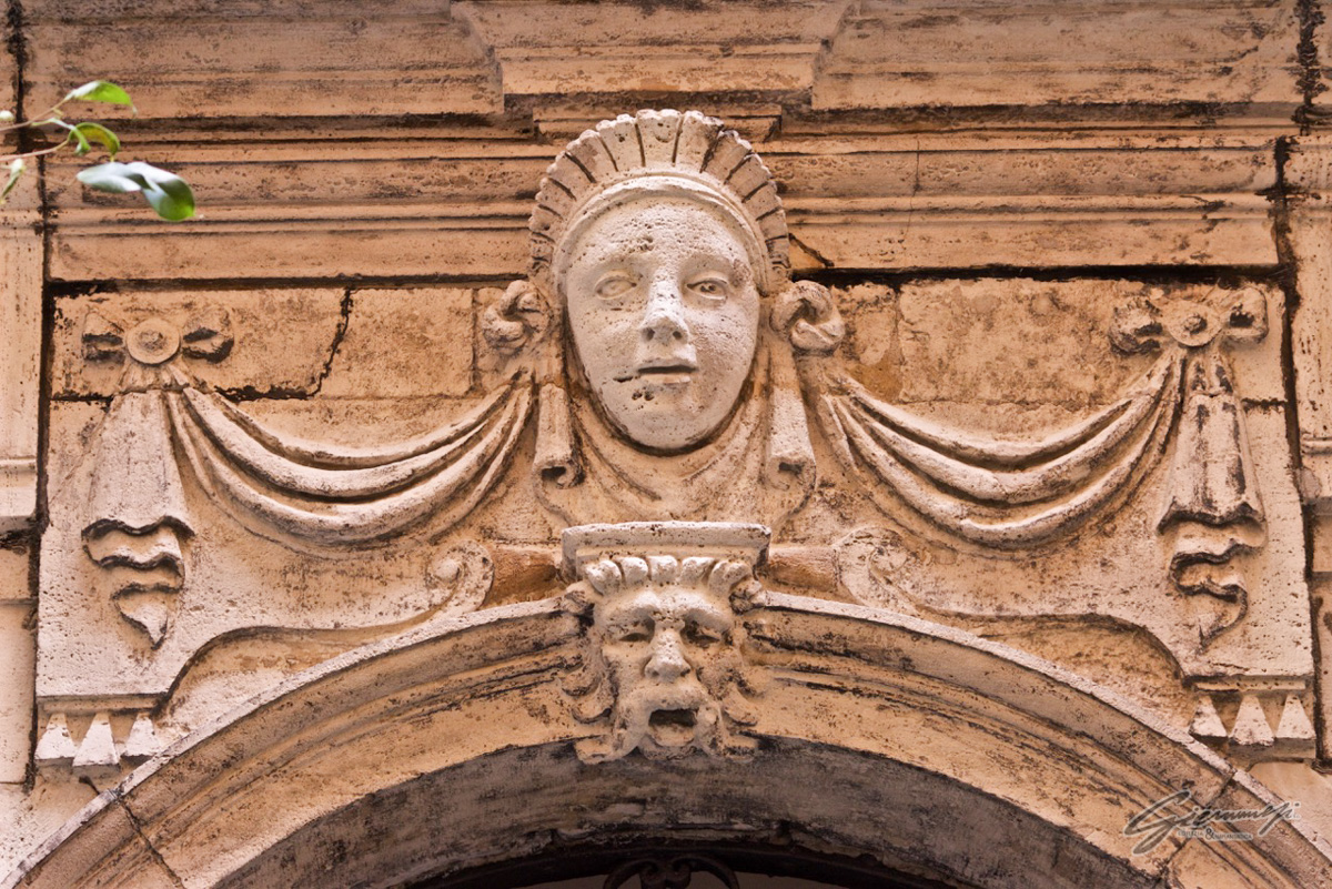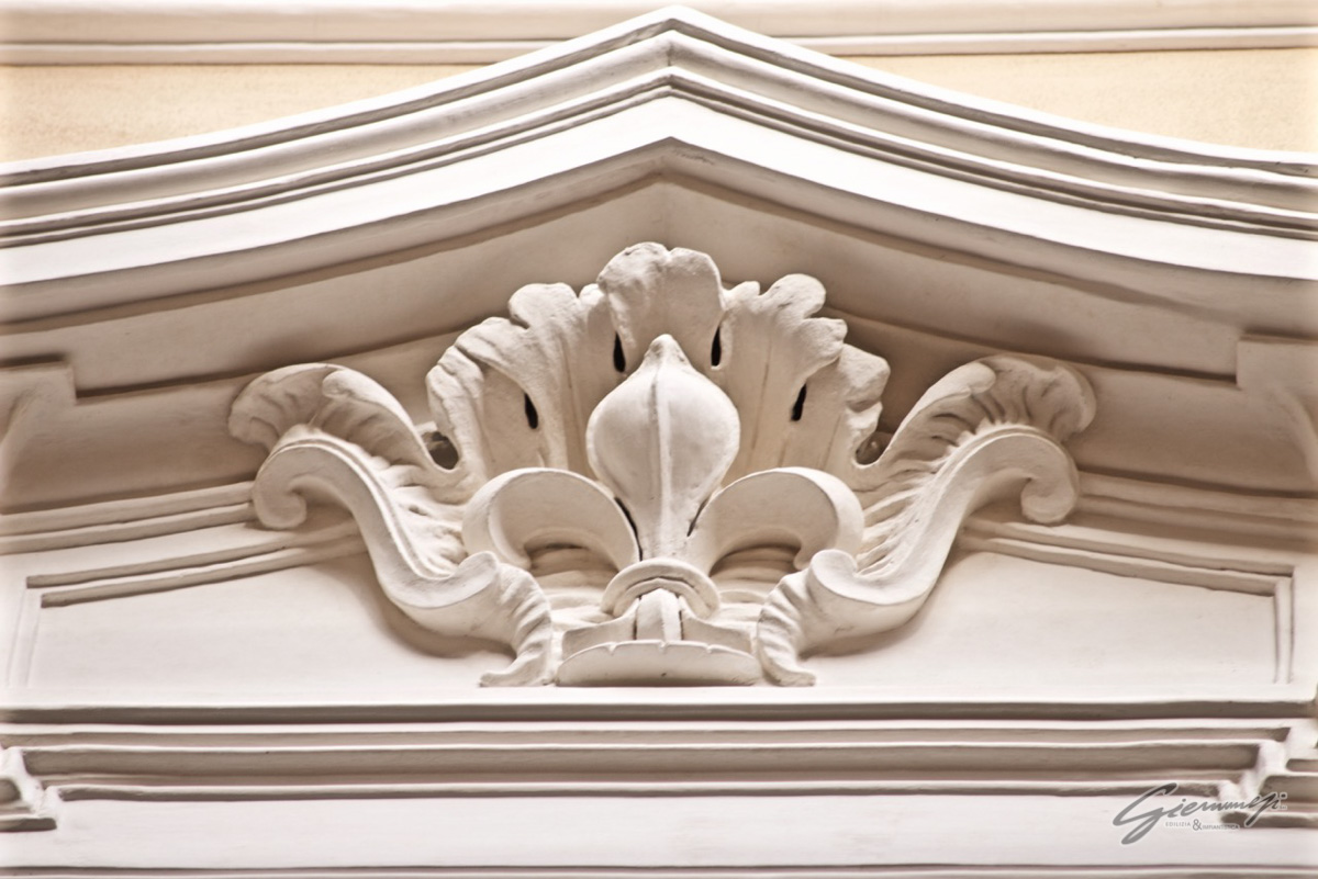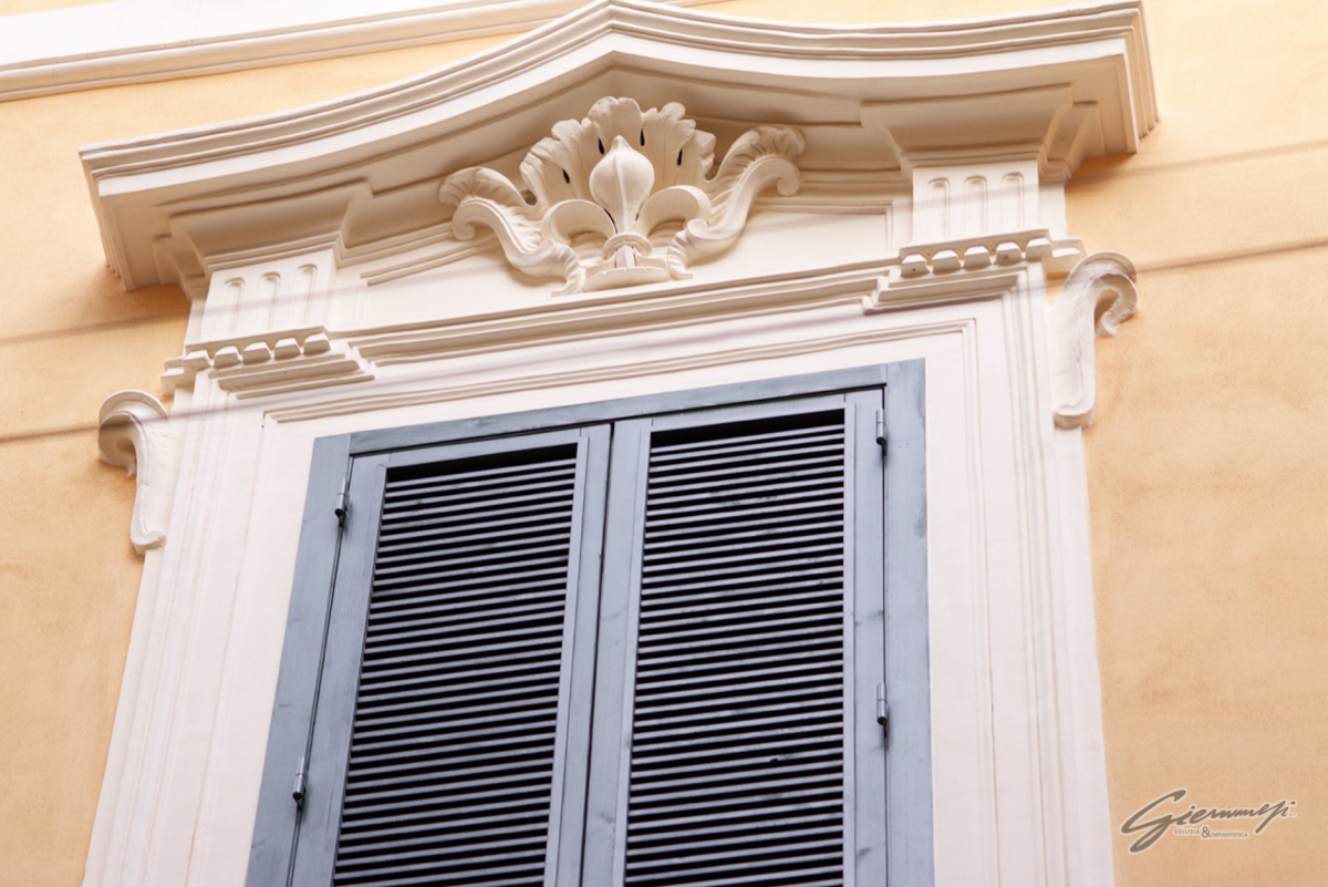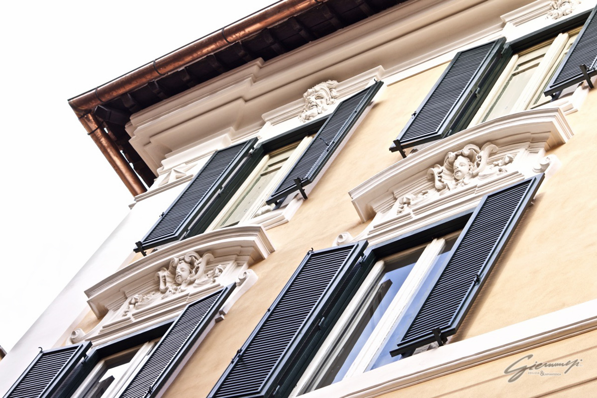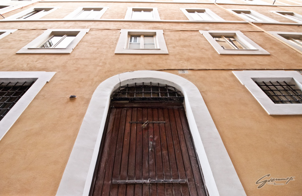 Tale sottolineatura dell’angolo volge anche su Vicolo San Giuliano, dando così continuità al volume edilizio, continuità che è anche garantita dalla tripartizione di questa facciata mediante il ripetersi dei marcadavanzali al secondo e terzo piano.