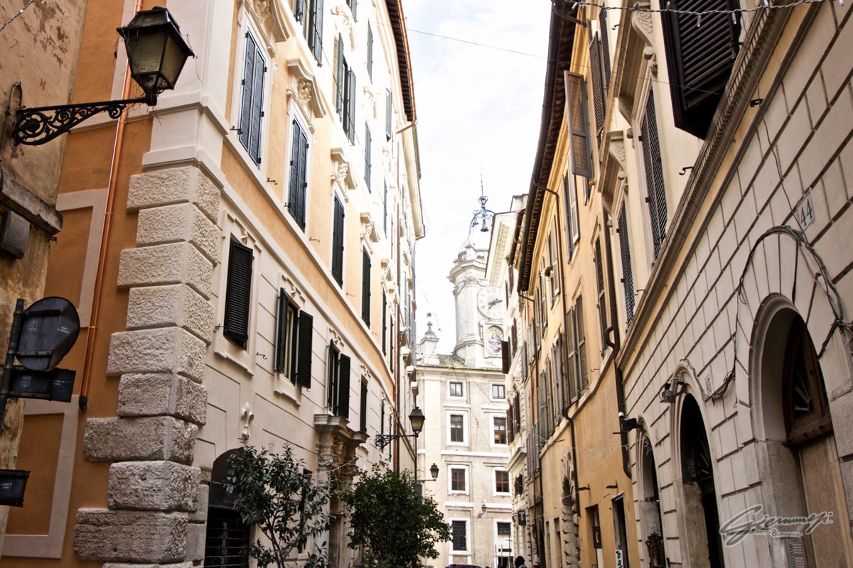 Ciò nonostante la facciata su Vicolo San Giuliano risulta molto piatta ed omogenea, a causa del ritmo uguale delle aperture e del ripetersi monotono a tutti i piani delle semplici cornici murarie che le delimitano; essa non concorre, né ha mai concorso, con la facciata su Via dei Banchi Nuovi che ha perciò tutto l’onere e l’onore di conferire pregio e valore architettonico al Palazzetto.